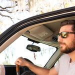 Gold mirror with enhanced warm amber-brown view cuts through blinding sun in rocky mountains and arid deserts. Boosted browns and reds make every detail pop in stunning clarity.