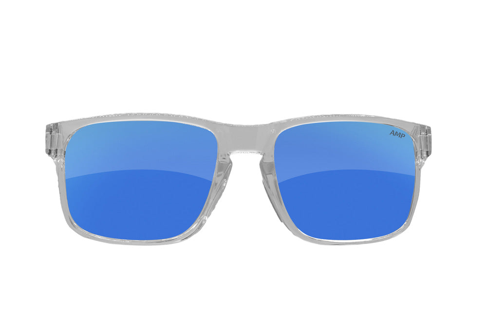 Color Enhancing AMP Glacier Polarized lenses with bright blue mirror coating fine-tune your view to provide exceptional color contrast and clarity.