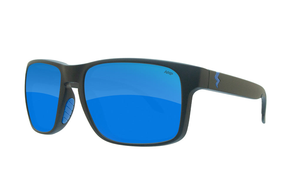 Color Enhancing AMP Glacier Polarized lenses with bright blue mirror coating fine-tune your view to provide exceptional color contrast and clarity.
