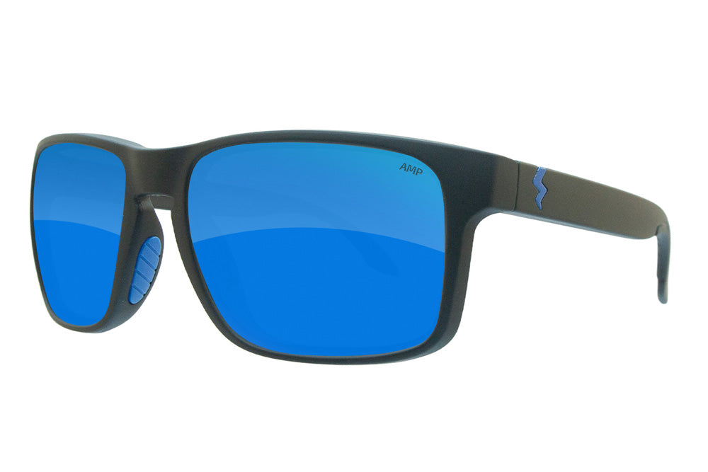 Color Enhancing AMP Glacier Polarized lenses with bright blue mirror coating fine-tune your view to provide exceptional color contrast and clarity.