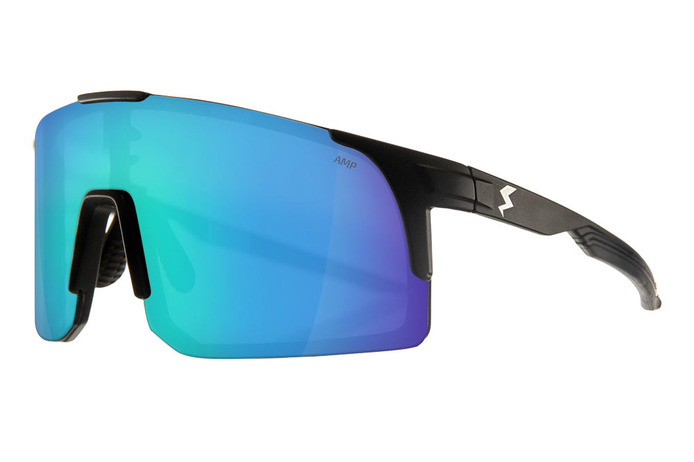 Matte Black Marino Frames with AMP Color Enhancing Glacier Mirror Lens